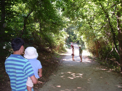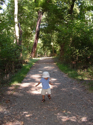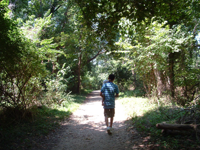 Footsteps through the trees.