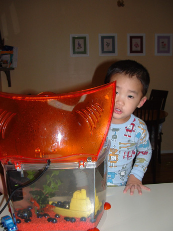 That's right... he's kissing the tank.